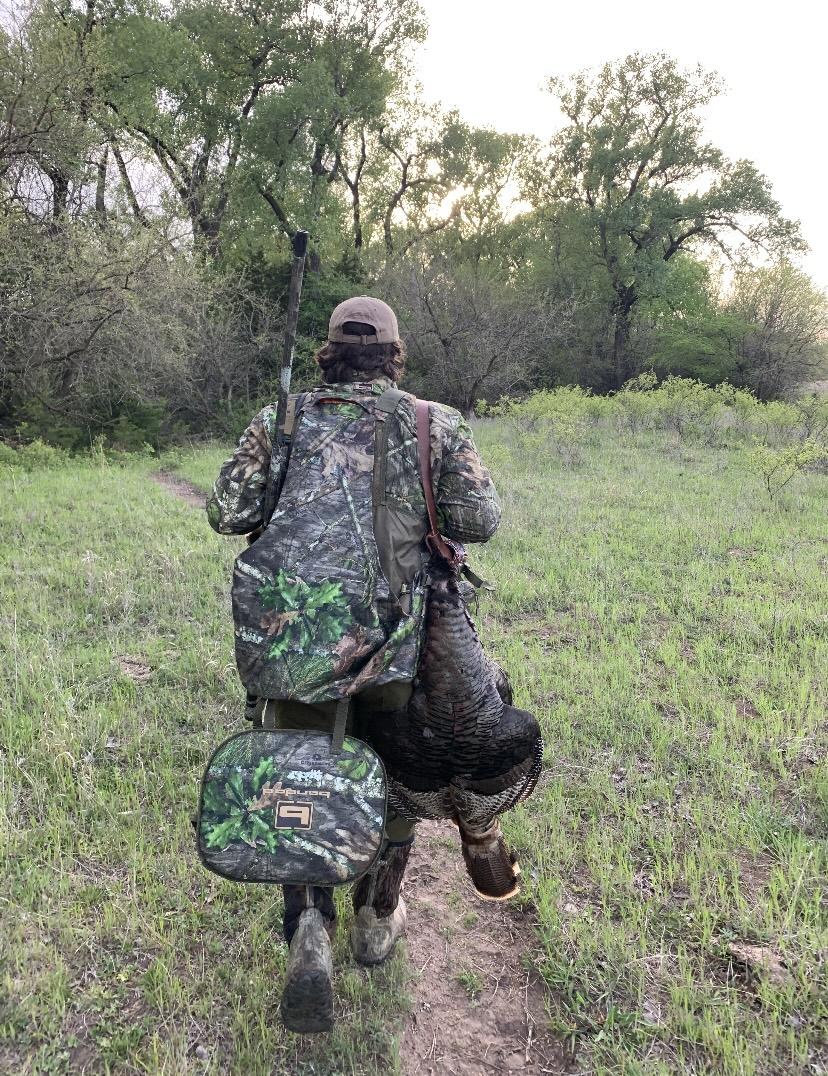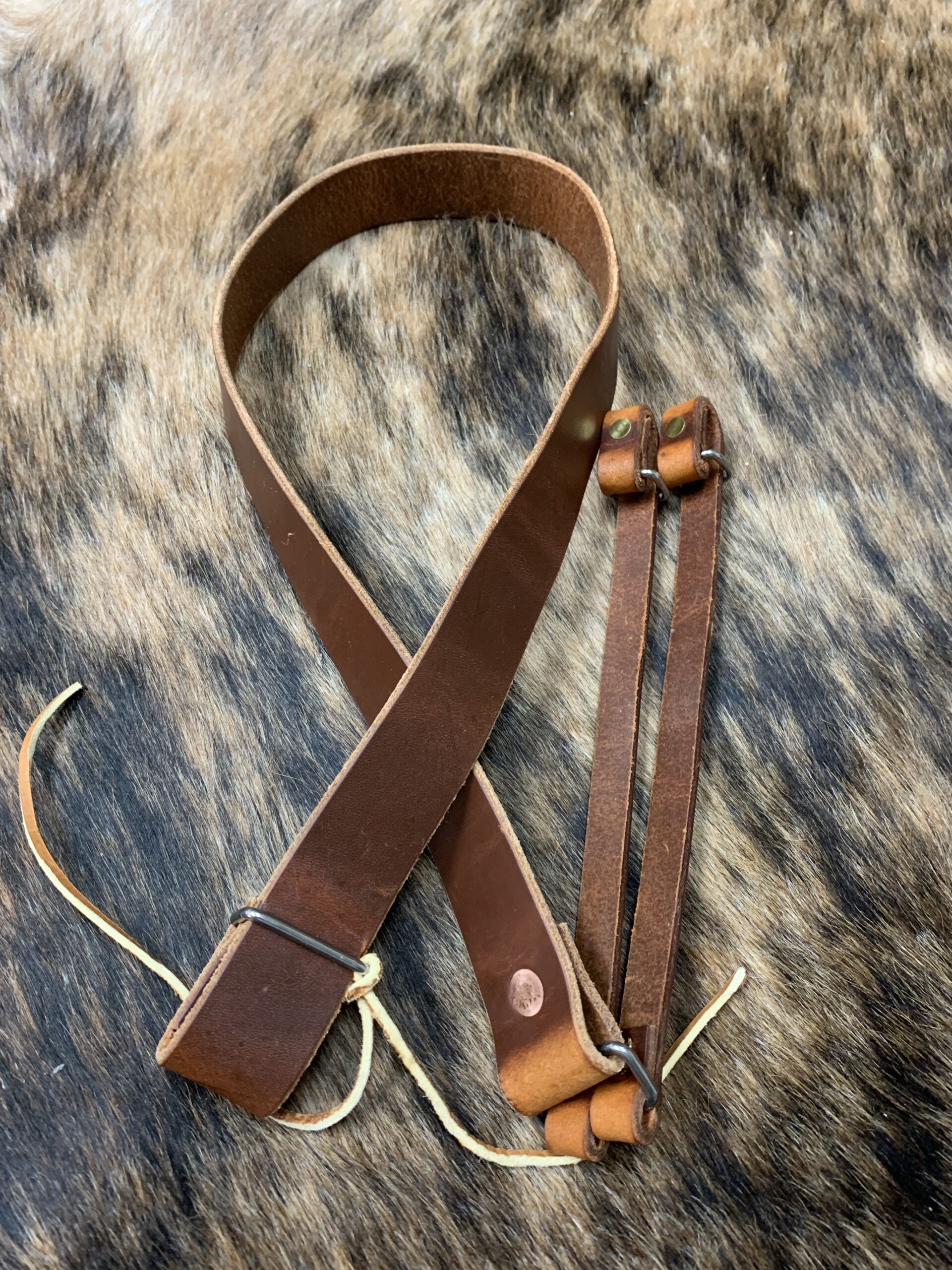 The “Limb Hanger Turkey Tote” is for that extra comfort carrying out that huge over 20 # turkey. The leather game strap is 1 1/4″ wide and after looping one end over the head and the other over the legs the tote can be draped over head and on your shoulder for hands free toting. This tote is made from genuine harness leather that has been dipped in a special mixture of waxes and tallows to give it a long life of rugged outdoor use. This tote is sure to make any hunt more enjoyable and less hassle getting your trophy out of the woods no matter how far you had to chase him. If you would like your Turkey Tote personalized with your initials, or name let us know. During checkout go to the “Add a note to your order” and explain what you want.